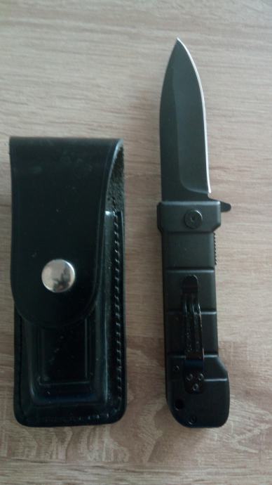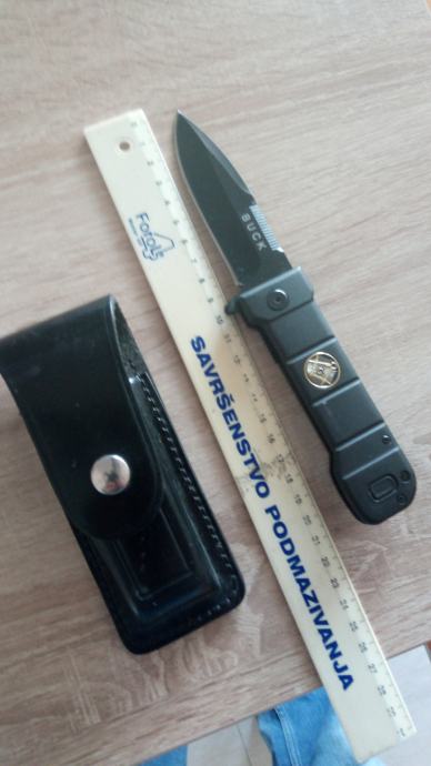BUCK , taktički nož na otvaranje , sa kožnom futrolom . Potpuno novo nekorišteno.Otvara se potiskom prsta na polugu , automatski se zakoči kada se otvori . Nož se može nositti u futroli ili za remenonom .
