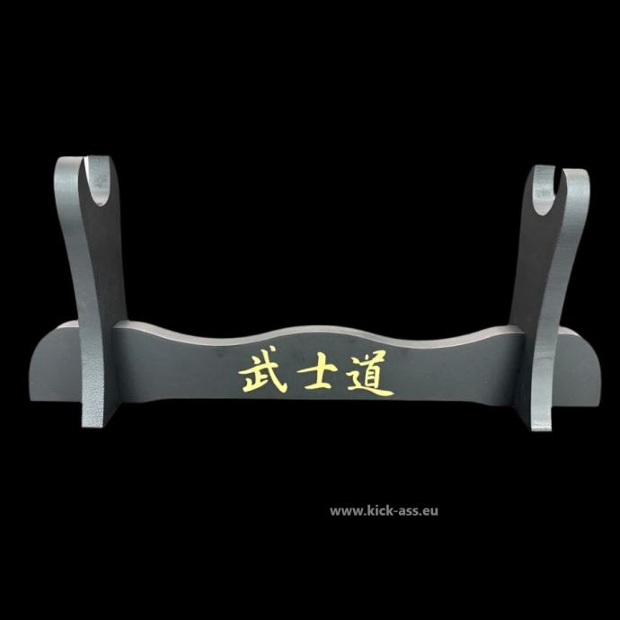 Stalak za katanu od drva, crne boje . Stalak se lako sastavlja i omogućuje izlaganje katane ili mačeva. Na stalku piše japanskim slovima: Bušido