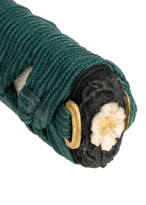 - Čvrsto omatana drške od zelene svile izrađeno je u tradicionalnom Katate-Maki stilu