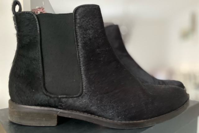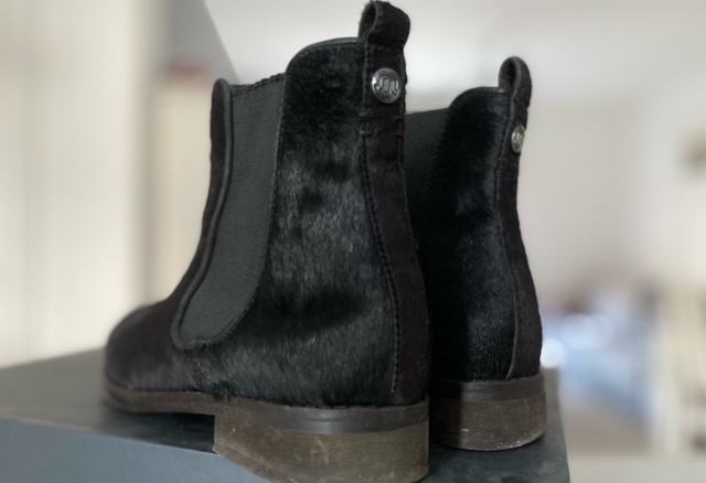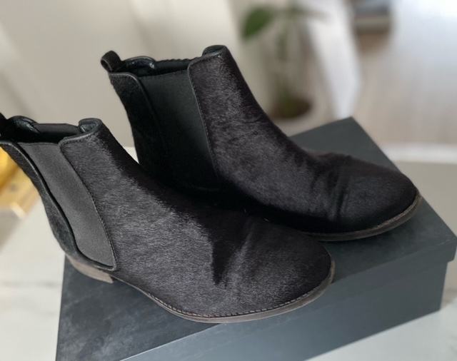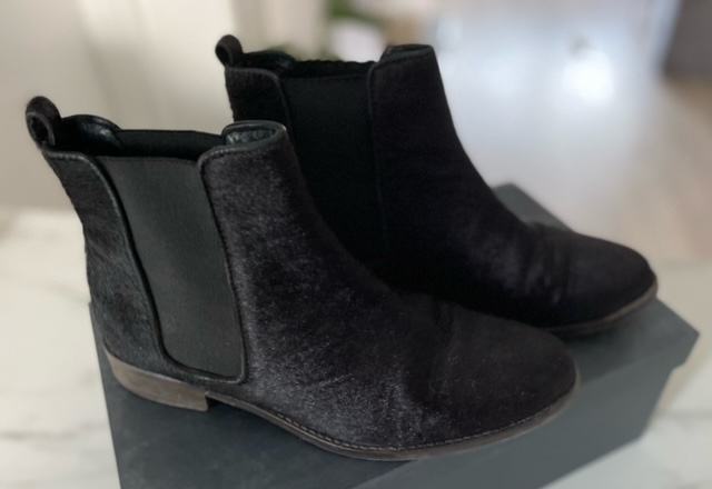 Crne kožne gležnjače, prekrivene pravom dlakom, veličina 39, nošene u ispravnom stanju bez oštećenja, izuzetno mekane i udobne, lagano se oblače na stopalo. Mogučnost slanja poštom.