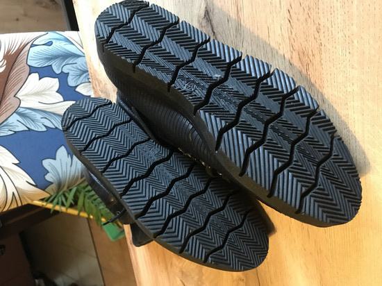 Izgleda kao prava koža i deblji gumeni potplat , pa se ne kližu - a za unutarnje gazište do cca 25 cm.