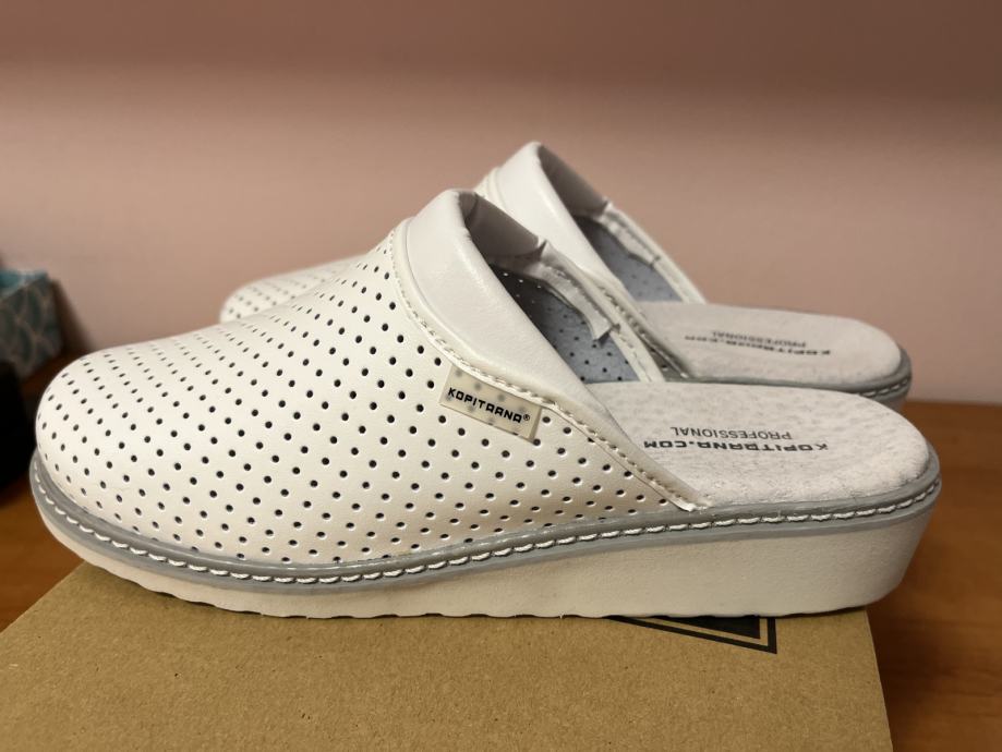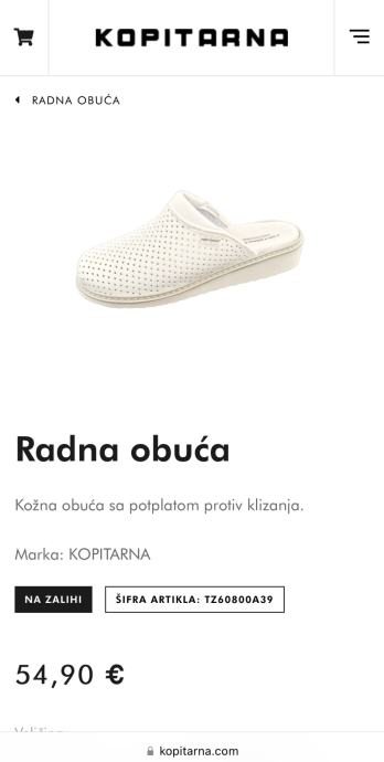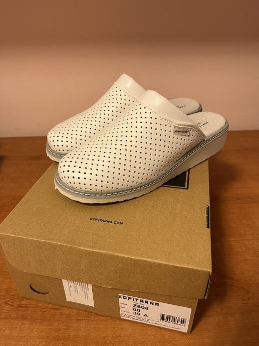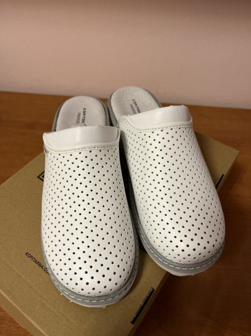 Kopitarna radne papuce, bijele. Velicina 39, uzi model. Nove, nenosene, u originalnom pakiranju.