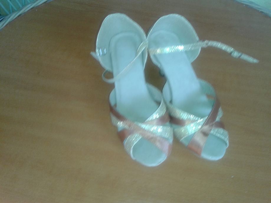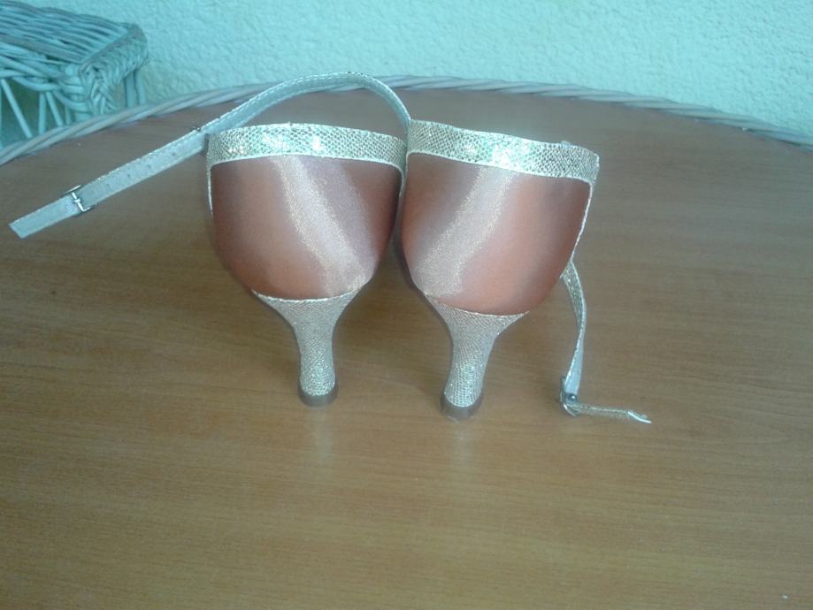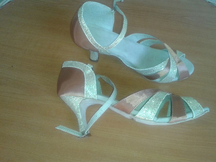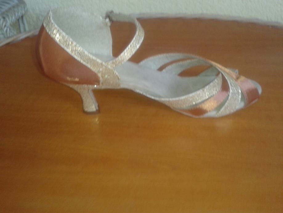Ženske plesne cipele potpuno nove, nenošene. Latino/ballroom plesne cipele s kopčom (boja badem sa kombinacijom zlata). Broj EU39/US8/UK6. Visina pete 5cm. Cijena 250 kn plus troškovi dostave.