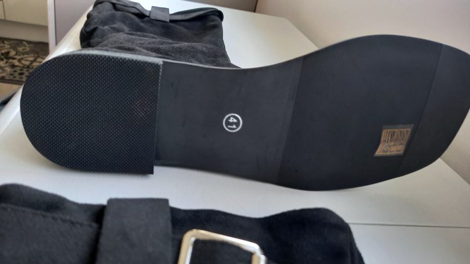NOVO: ženske crne čizme otvoreni prsti tipa japanke, br 41, optika brušene kože. Unutarnja dužina gazišta 26 - 26,5 cm.