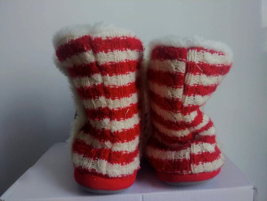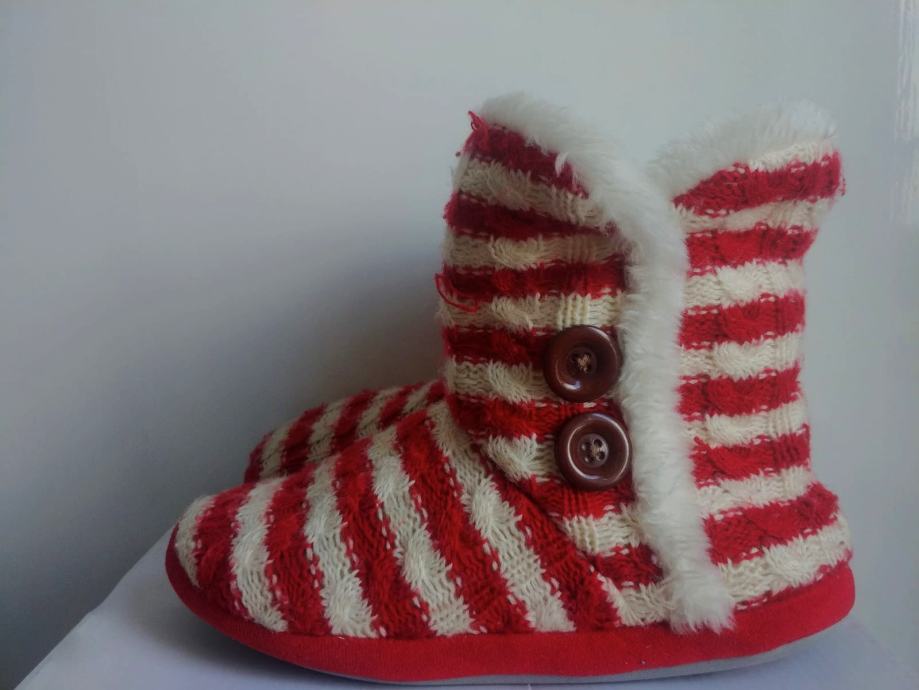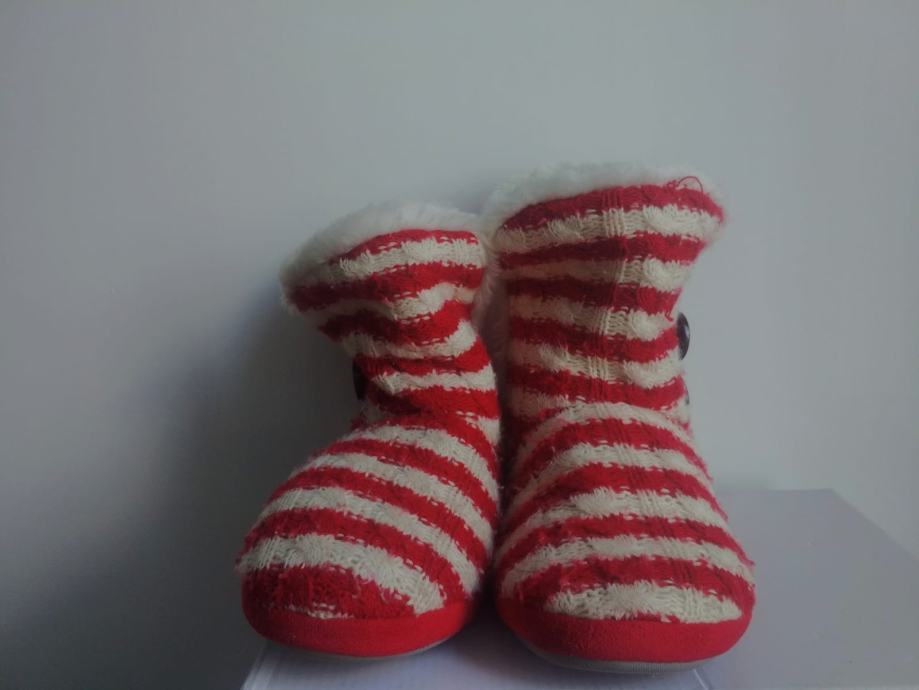 Prodajem ženske zimske papuče veličina 38/39 tipa čizmice, rijetko nošene, praktički nove i u odličnom stanju. Papuče su na crveno - bijele prugice i odlične za blagdansku atmosferu. Papuče su jako mekane i tople, iznutra podstavljene umjetnim krznom, a izvana vunene.