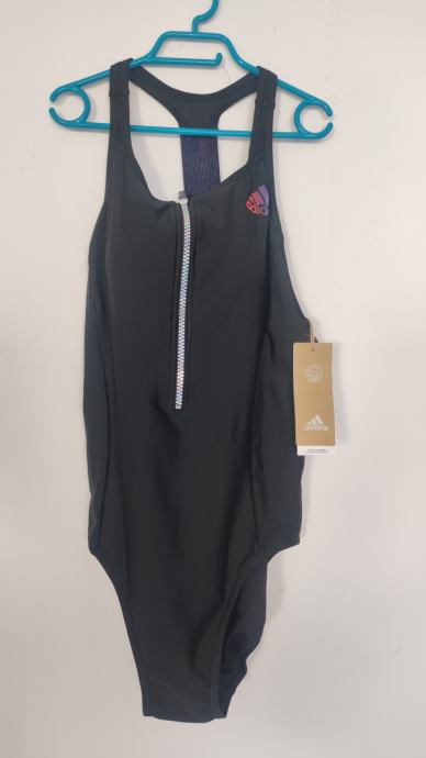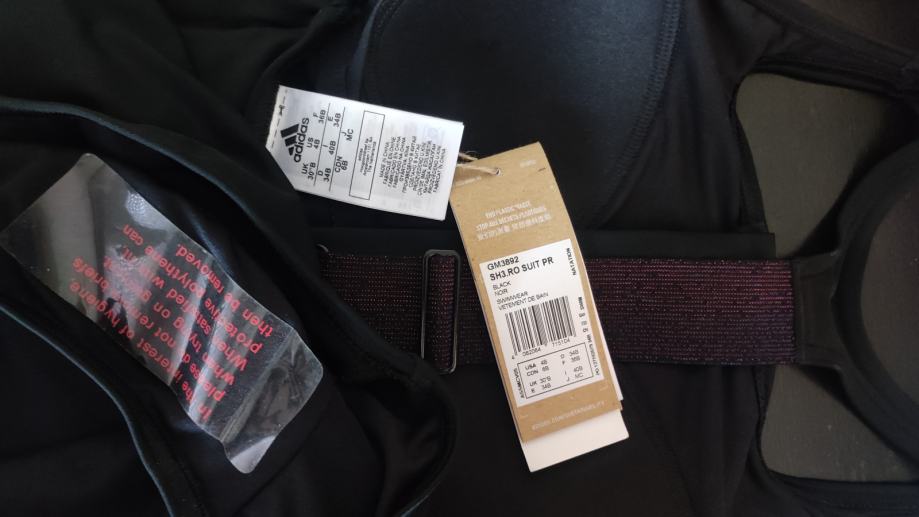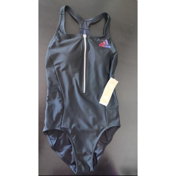 Novi Adidas sportski jednodijelni crni kupaći kostim, vel 34, rastezljiv i jako prilagodljiv tijelu. Podesiv straznji dio (izmedju ramena), naprijed cif, dio oko grudi pojacan ne predebelom spuzvom.