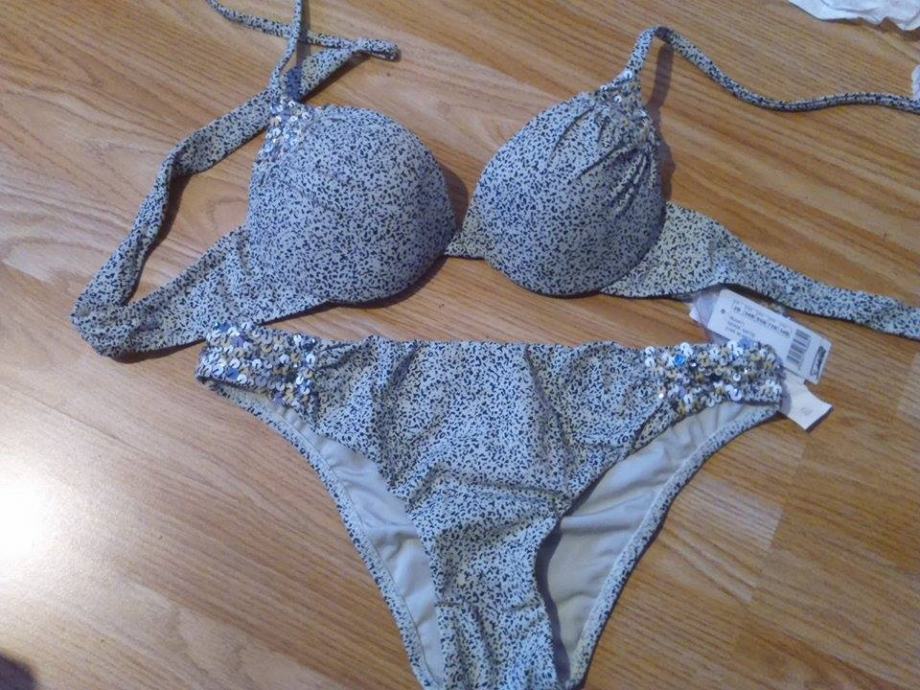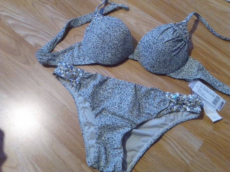 Nov još s etiketama predivan sivi badić s perlicama.