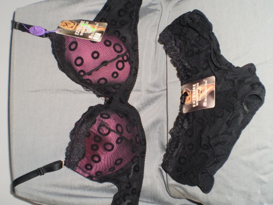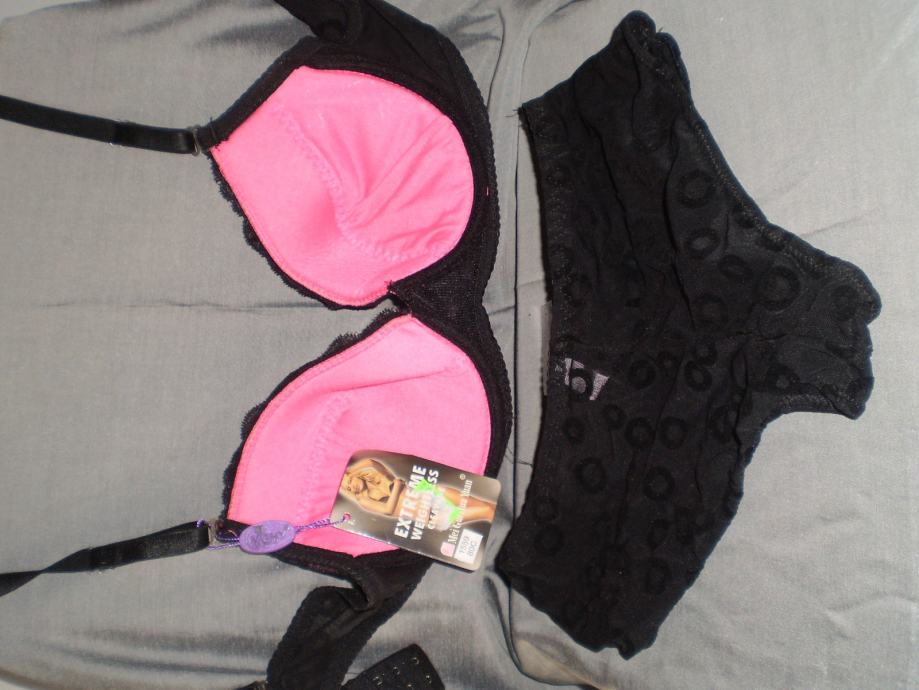 Novo s stiketom! Sexy donje rublje crne boje s crnom čipkom i dezenom kružiča . Grudnjak ( push up) veličine 80C ili 36. Braziliane/gačice veličine 80 C ili 38ili trojka. Grudnjak protkan nježno rozom pozadinom. Push-up grudnjak dodatno podstavljen, a jastučici se po želji mogu i izvući.