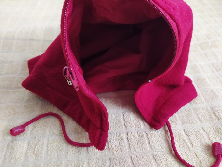 kapuljača ženska 35*23.5cm. Crvena boja s zatvaračem.