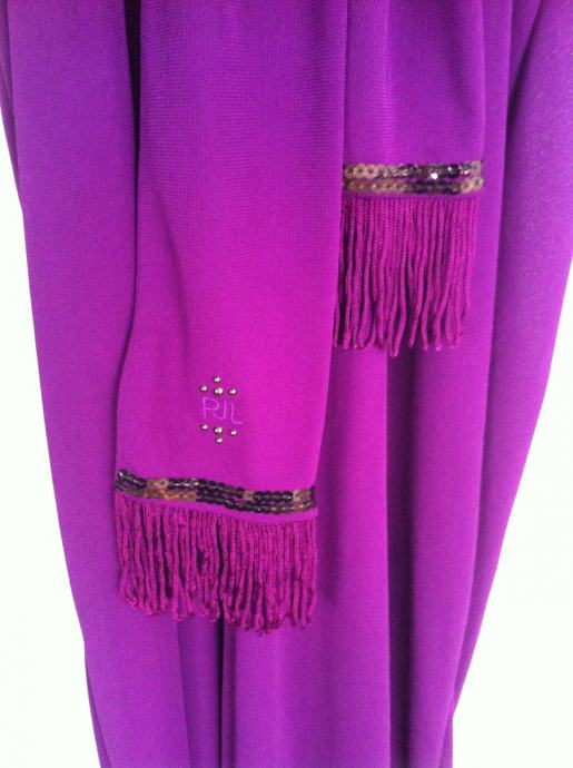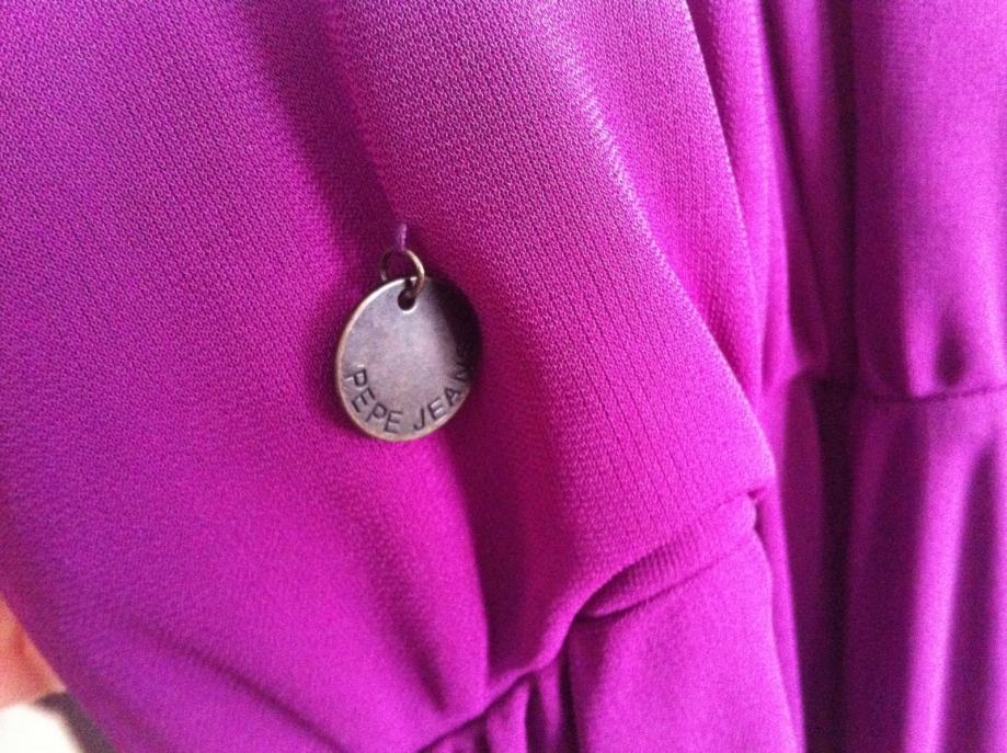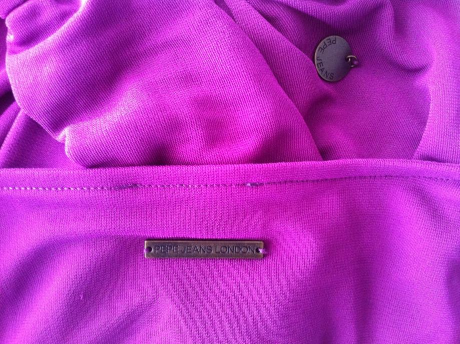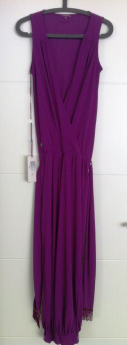Ženski kombinezon Pepe Jeans ljubičaste boje, veličina M. Elegantan, moderan. Dubokog izreza na preklop, sa pojasom u struku koji završava resicama (slika 6); moze se skinuti i nositi bez njega.