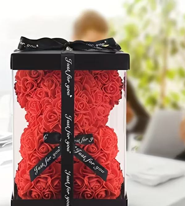 Ružin medvjed - Umjetno pjenasto cvijeće, savršen poklon za Valentinovo, Majčin dan, godišnjicu, vjenčanje, rođendan i Božić