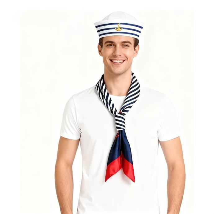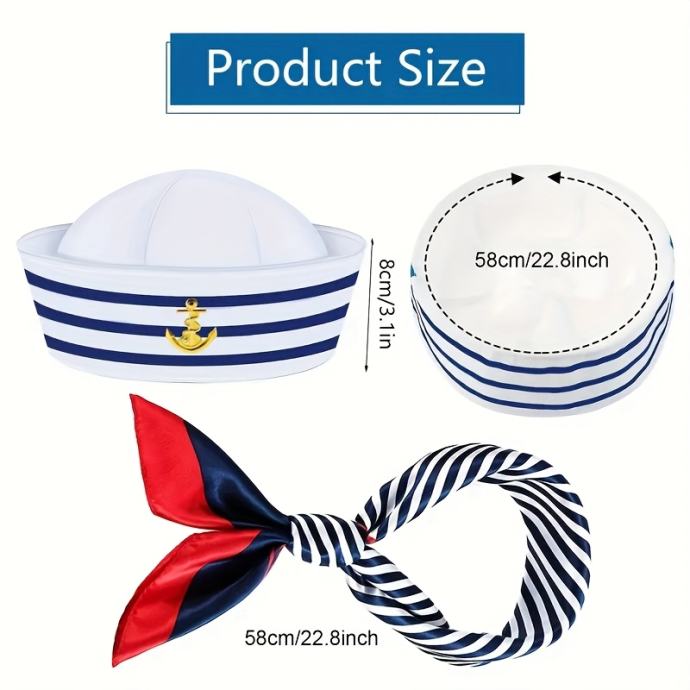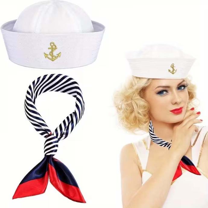 Set od 2 komada kape kapetana jahte, mornarske kape, prugaste šalove, vezene kupole s sidrom za muškarce i žene, ansambl šešira za zabavu
