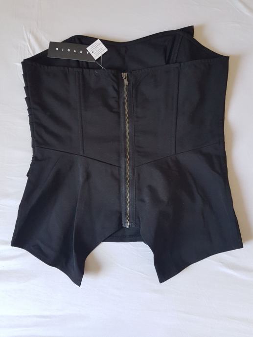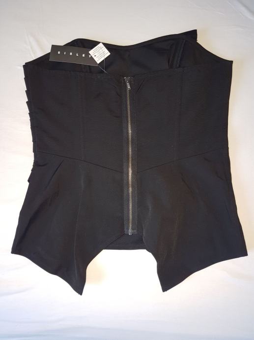 Prekrasni novi Sisley korzet, nikada nošen, na njemu se još vidi etiketa. Plaćen 240kn. Crne boje, rastezljivog materijala, strukiran, sa neobičnim i lijepim prednjim dizajnom, Zakopčava se šlicom odostraga. Prekrasan i elegantan. Veličina M. Slike kako stoji skinute s interneta.