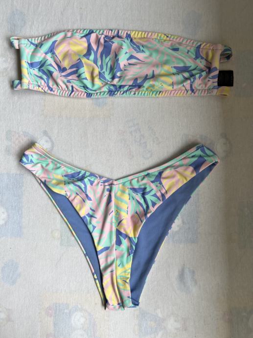 Nov, nema nikakvih etiketa (tako je došao, vrećicu sam bacila. Naznačena L veličina, može i za jači M. Grudnjak je s odvojivim jastučićima, regulacija na tri širine, super drži zbog onih silikonskih trakica. Jako lijep i kvalitetan model.