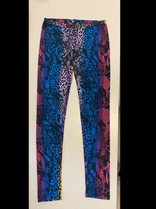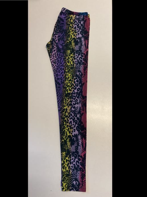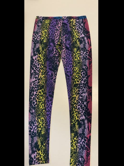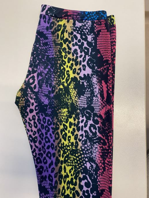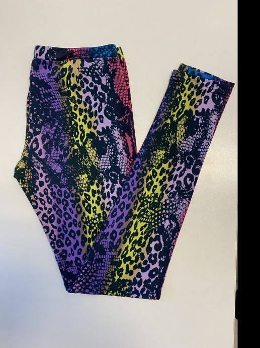 Par puta nošene, kao nove. Vesele, šarene, životinjski print. Veličina S. Struk 33 cm, ukupna duljina tajica 88 cm, dubina naprijed 19 cm, dubina iza na guzi 26 cm.