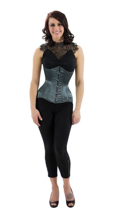 Underbust model s čeličnim kostima pogodan za oblikovanje figure, dulji (prekriva i bokove), boja: olovno siva.