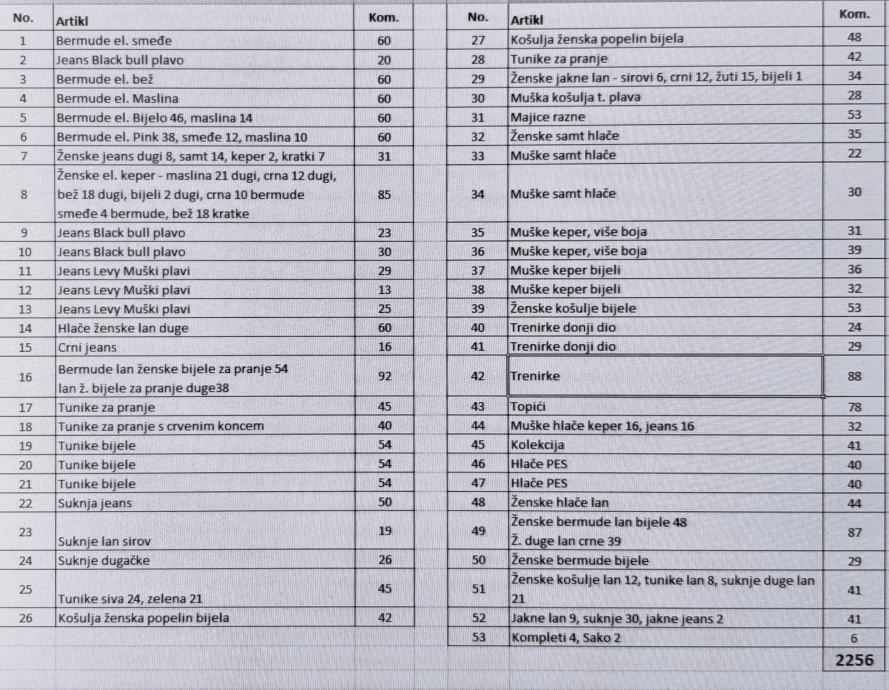 Potpuni popis robe prikazan na fotografijama u oglasu, a šaljem i na e-mail.