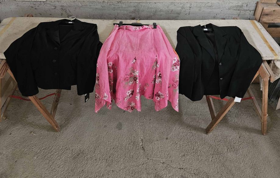 Hlače, bluze, košulje, bluze, bermude, topovi, majice, tunike, trenirke, suknje, jakne, odijela... Razne marke, pretežno hrvatski dizajneri.
