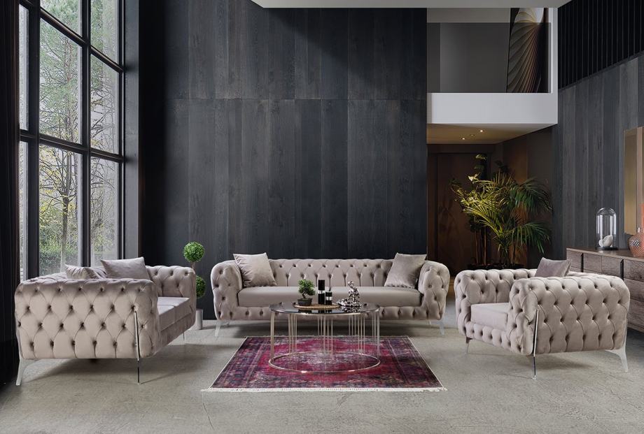 CHESTERFIELD MODERNE BARŠUN SOFE - DIZAJNERSKE VELVET GARNITURE