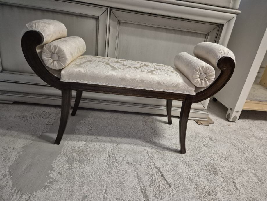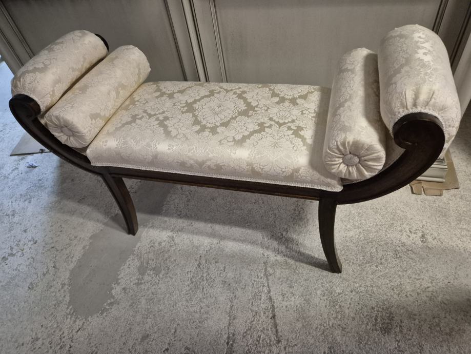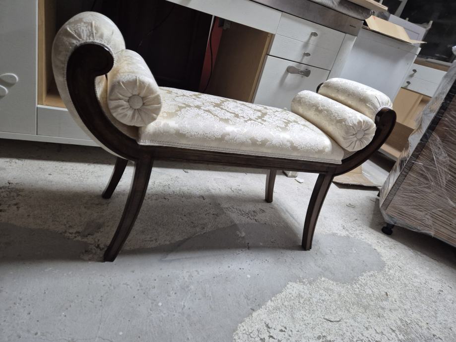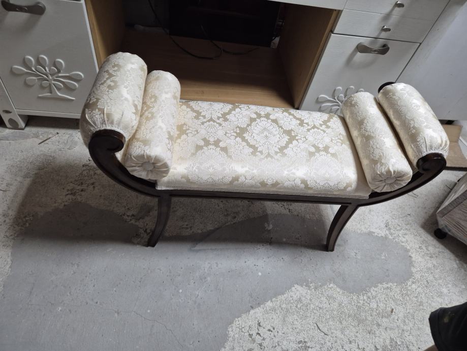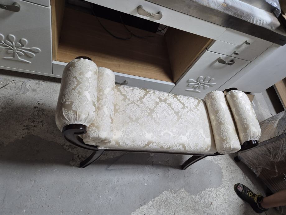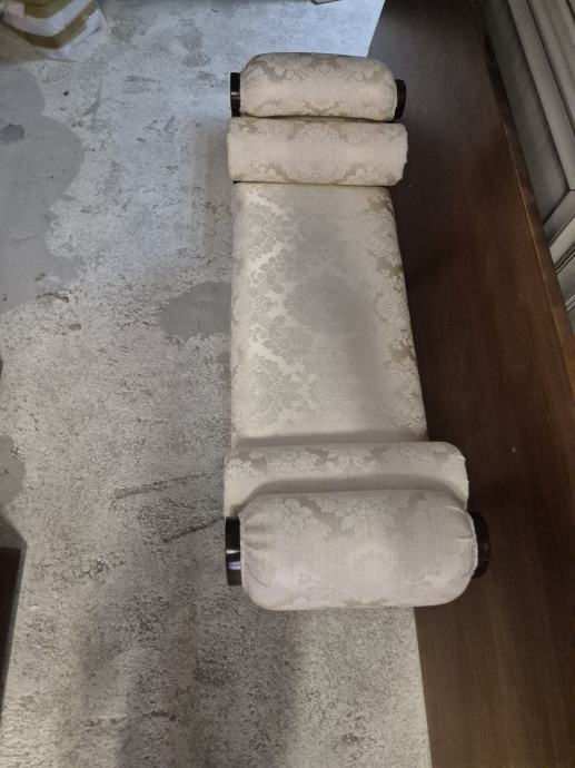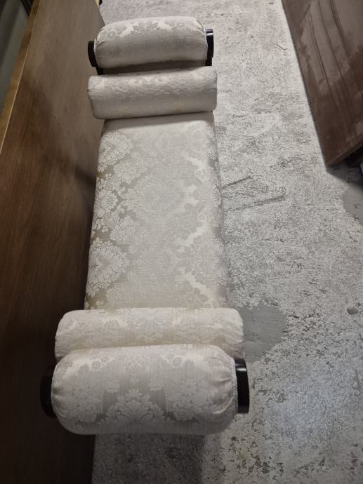 Oko 100 cm širine i 30 dubine .....predivna tkanina i 2 jastučića okrugla uz njega koja se mogu micati...ali daju pravi štih uz klupčicu..