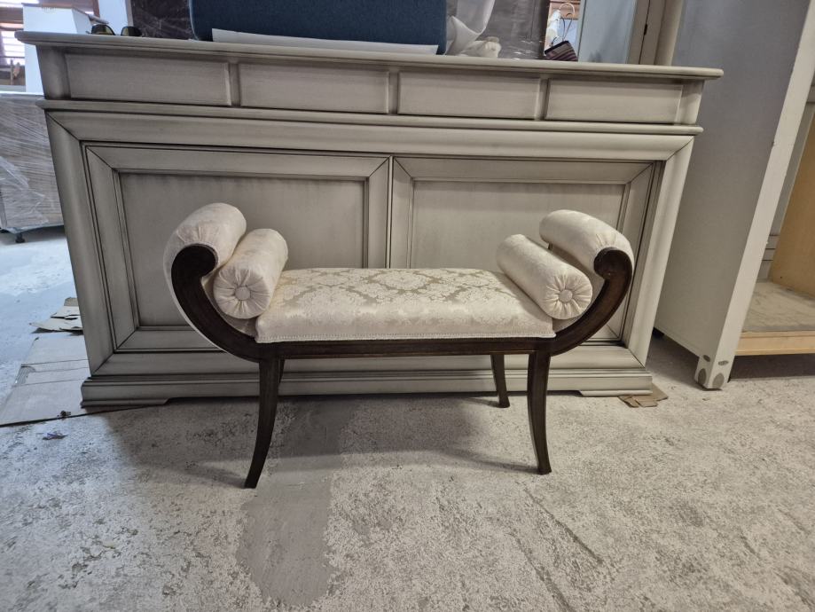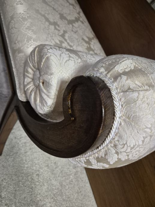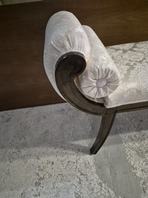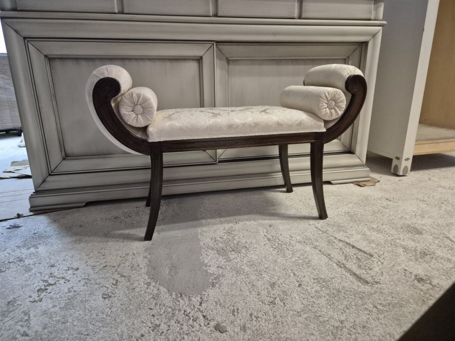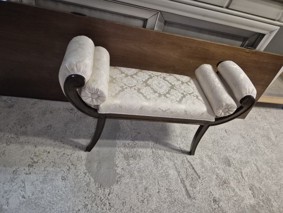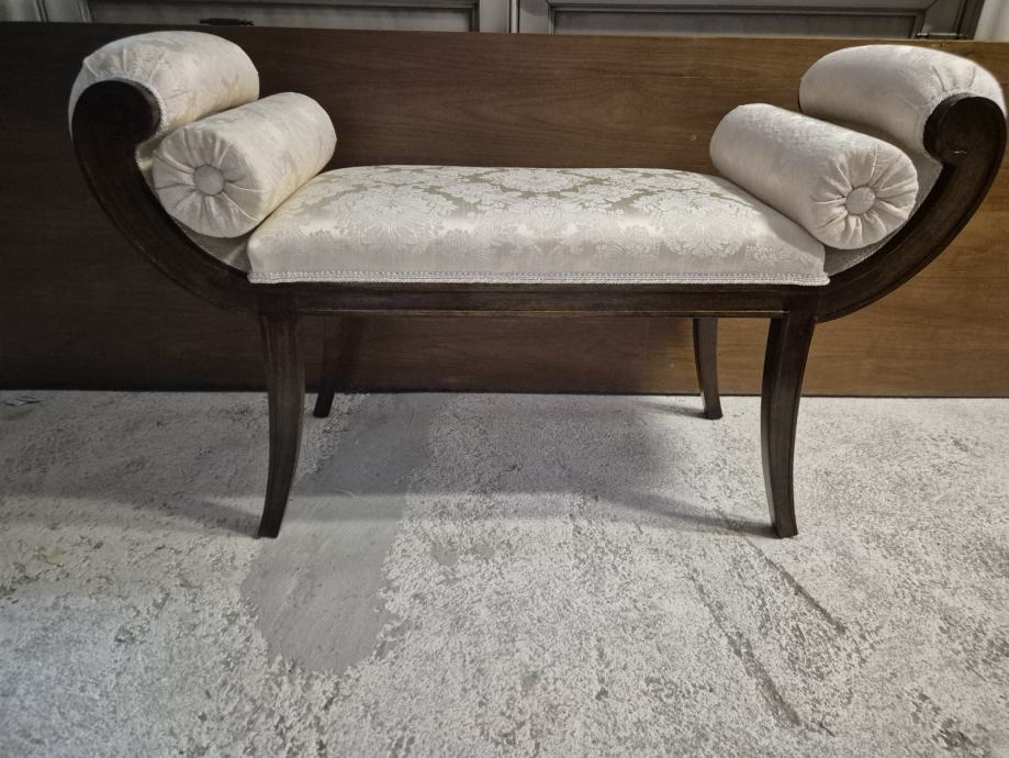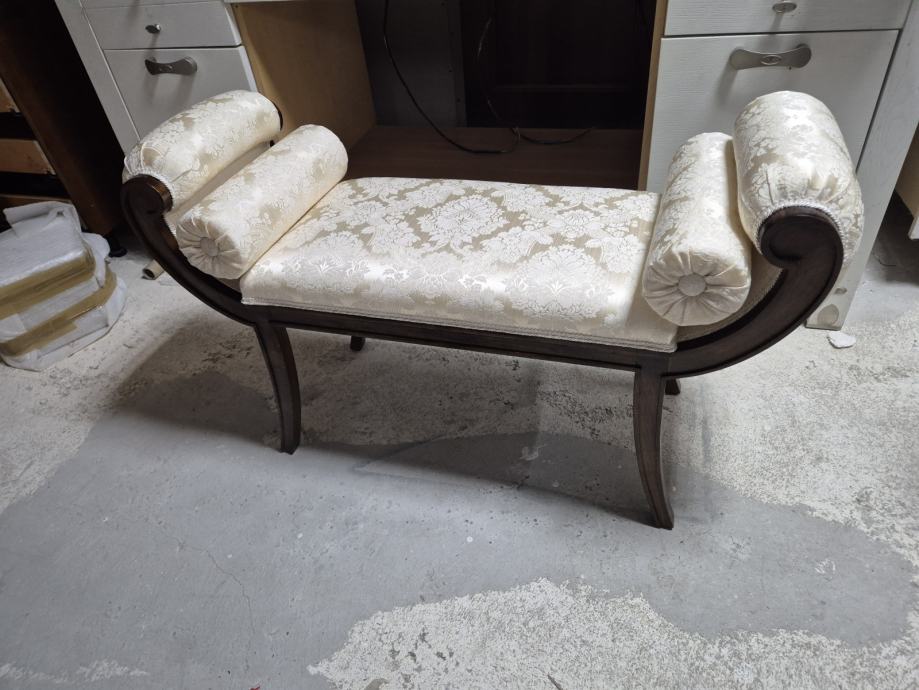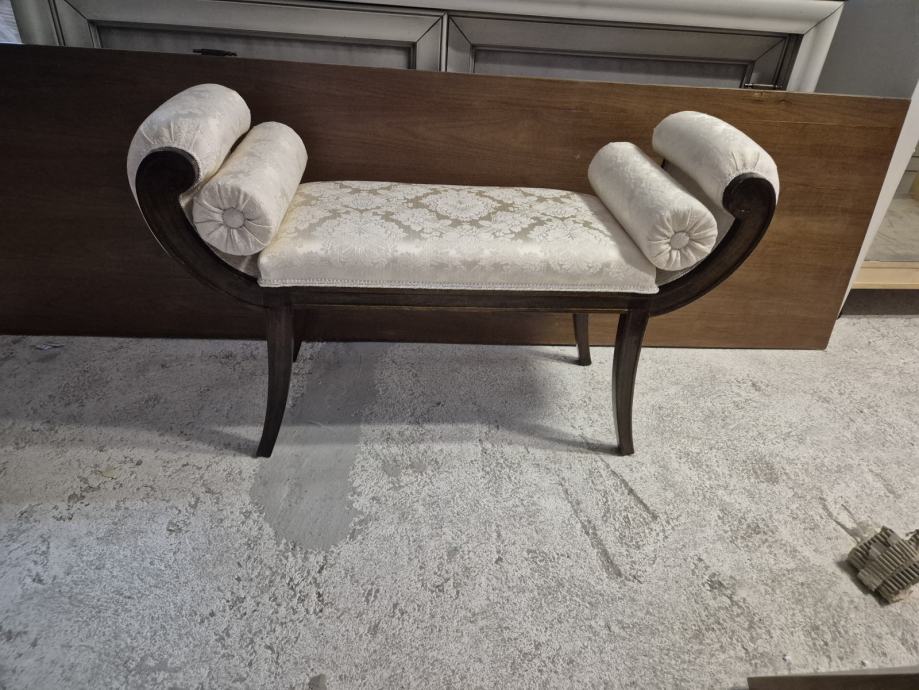 Oko 100 cm širine i 30 dubine .....predivna tkanina i 2 jastučića okrugla uz njega koja se mogu micati...ali daju pravi štih uz klupčicu..