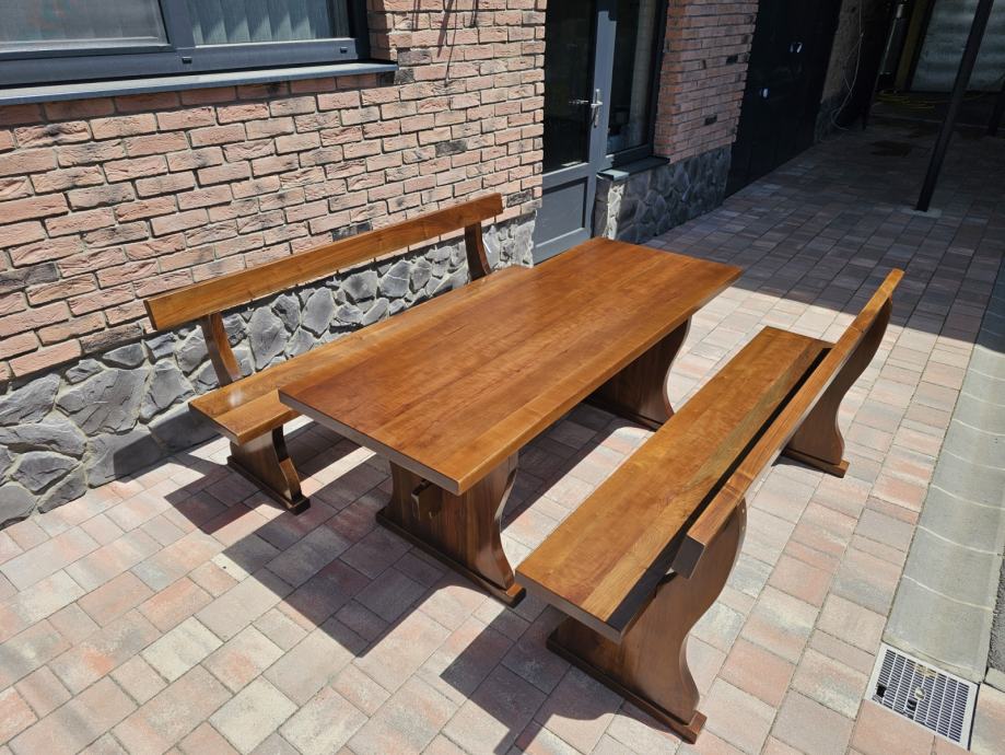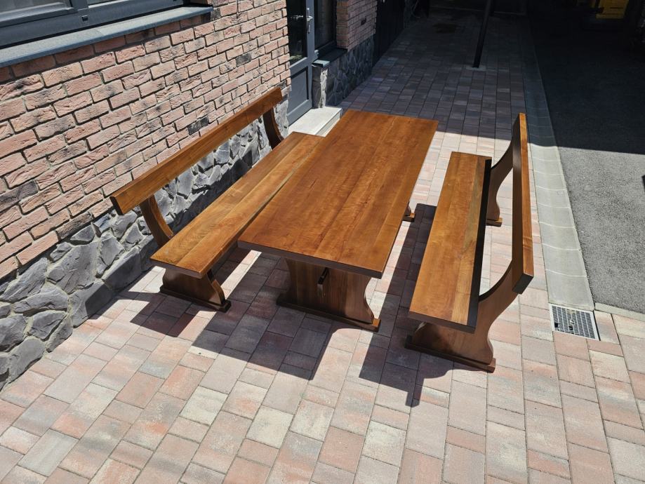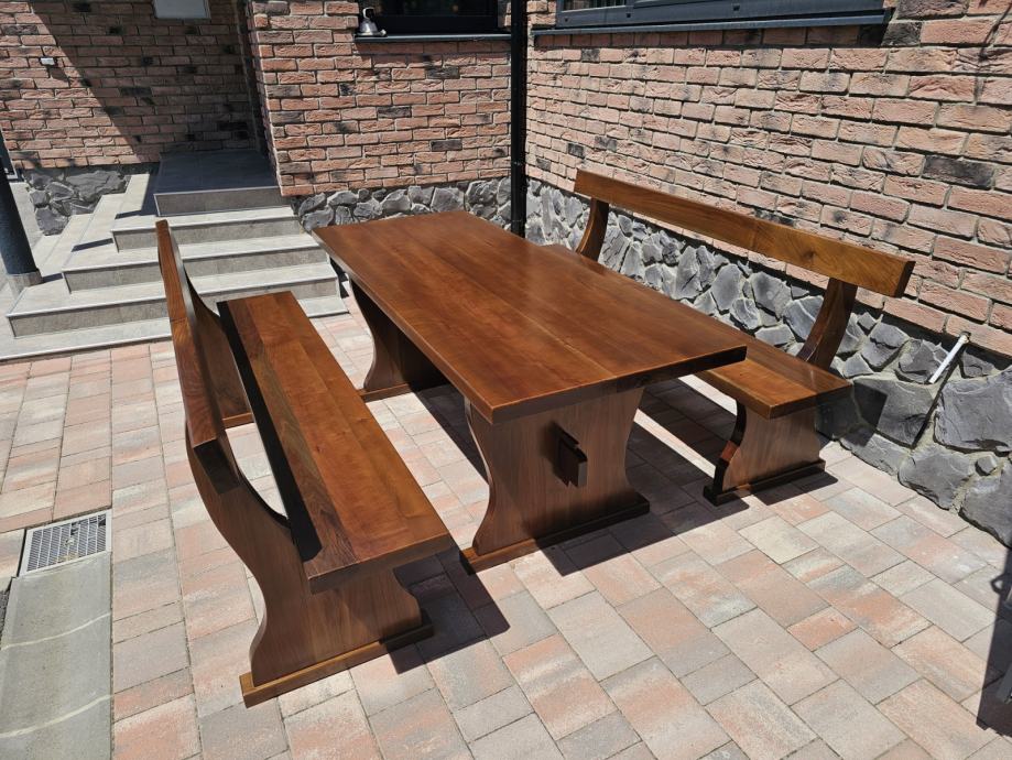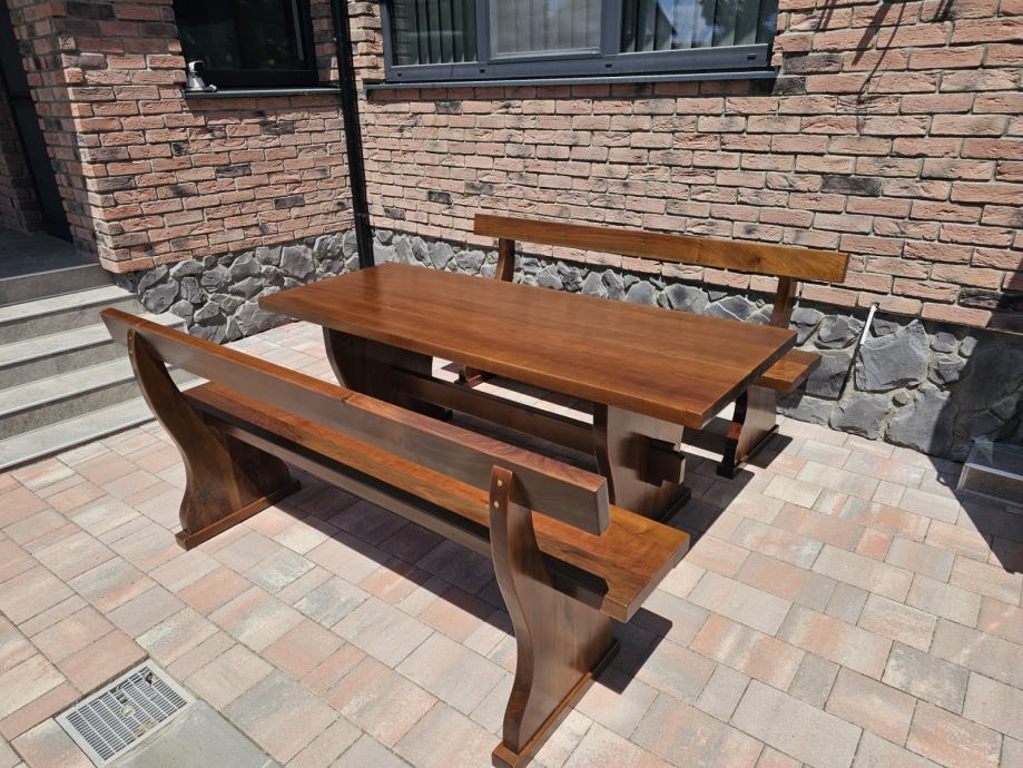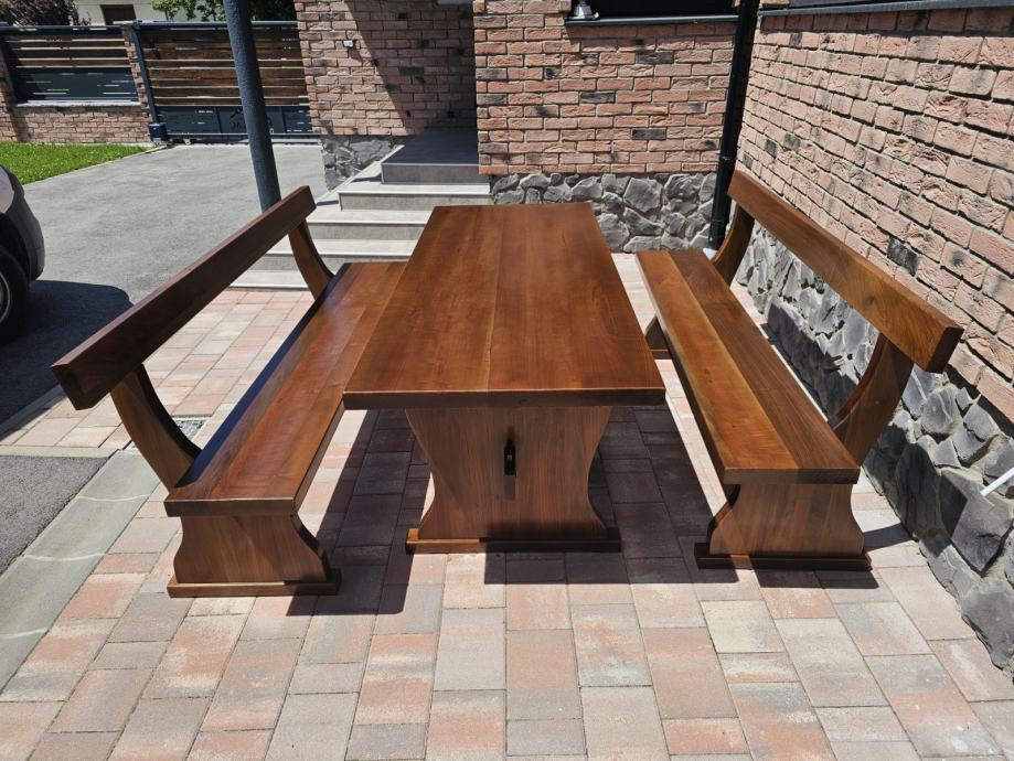 Drveni stol + dvije klupe od oraha - 2 metra dužine.