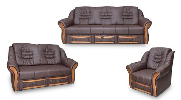 Kvalitetna garnitura klasičnog dizajna. Trosjed ima funkciju razvlačenja u ležaj, a dvosjed sadrži sanduk za posteljinu. Mogućnost narudžbe i prodaje po elementima. Veliki izbor presvlaka.