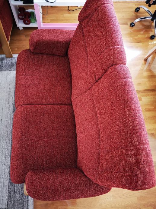 Ojastučena garnitura vrhunske njemačke marke Himolla, sastoji se od dvosjeda i trosjeda s drvenim hrastovim nogama u izvrsno očuvanom stanju. Visoka kvaliteta proizvoda: sjedalo, naslon i rukonasloni obloženi su izdržljivom i postojanom tkaninom, unutarnja konstrukcija od furnirske ploče (šperploče, a ne iverice), podloga sjedala s valovitim oprugama, sjedalo od visokoelastične spužve lijevane u kalup s ugrađenim mini džepićastim oprugama. Nema tragova udubljenja ili naboranih dijelova sjedala zbog korištenja. Izvrsna udobnost sjedenja, visoki naslon koji podupire vrat i glavu pri sjedenju. Odlično za gledanje filmova u "kućnom kinu". Pogodno za dnevne boravke, ali i poslovne prostore. Dimenzije (šir. × dub. × vis.):