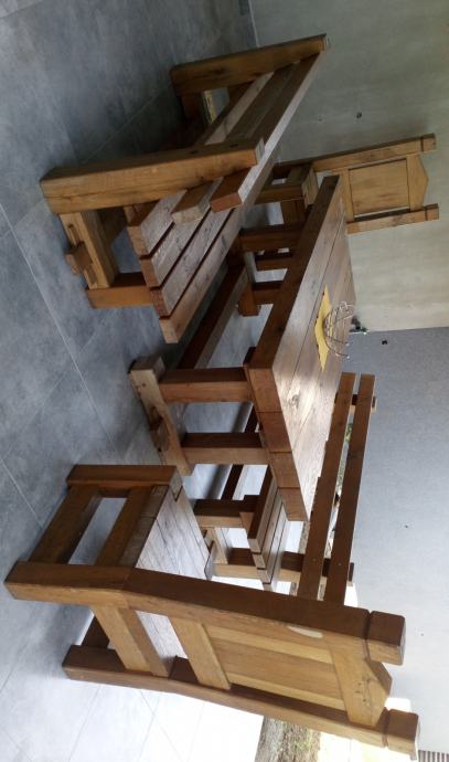 Stol, dvije klupe s naslon om i dvije fotelje prodajem 098238129