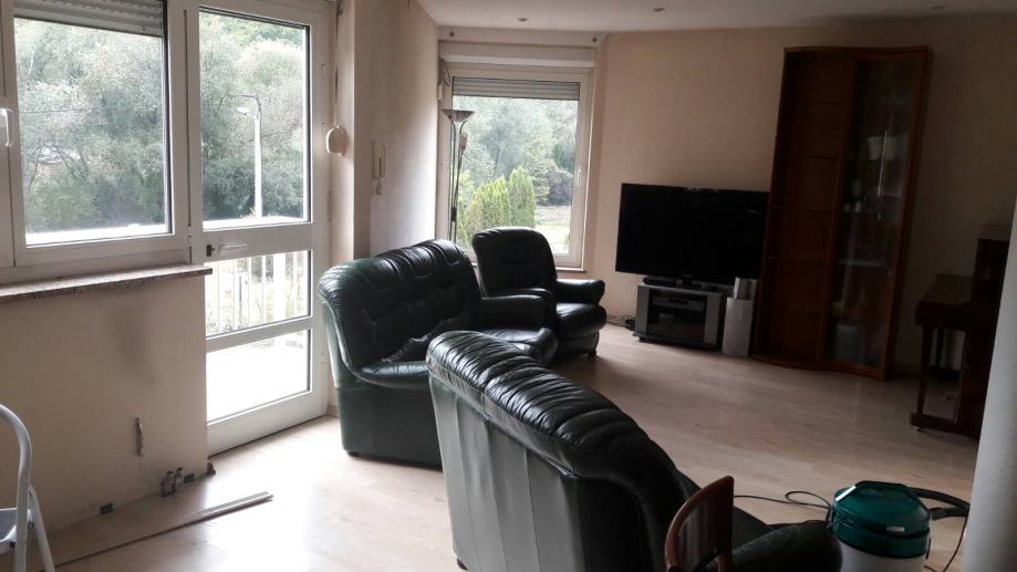 Oštećenja od korištenja su vidljiva na slikama i prikazana su realno. Površinski su manje izgrebani nasloni za ruke fotelje i jastuk fotelje. Trosjed je neoštećen, u besprijekornom stanju. Desni naslon za ruke dvosjeda izgreban (ima zasebna slika) i vrlo vrlo malo desni jastuk dvosjeda.