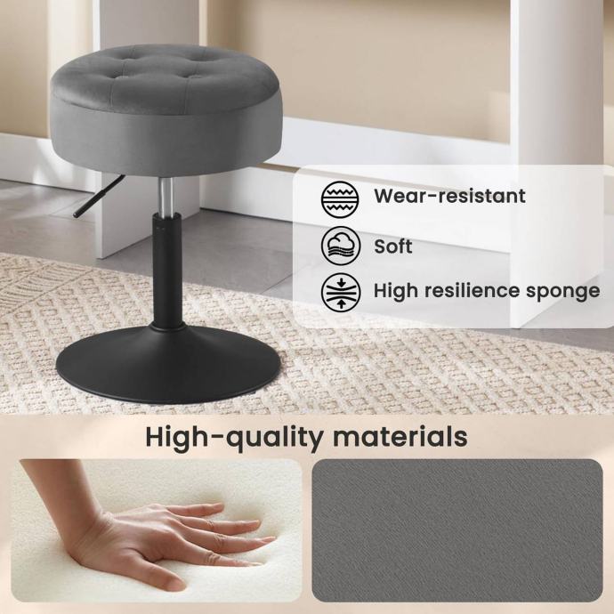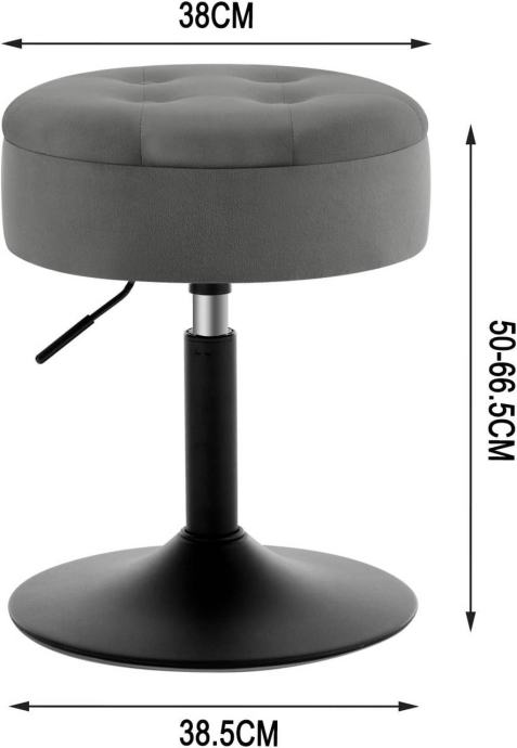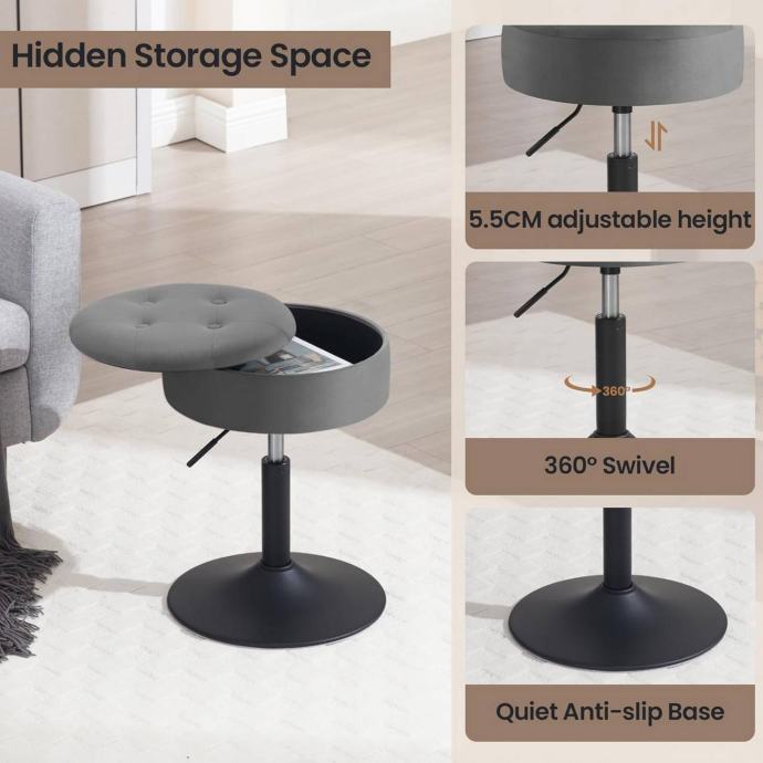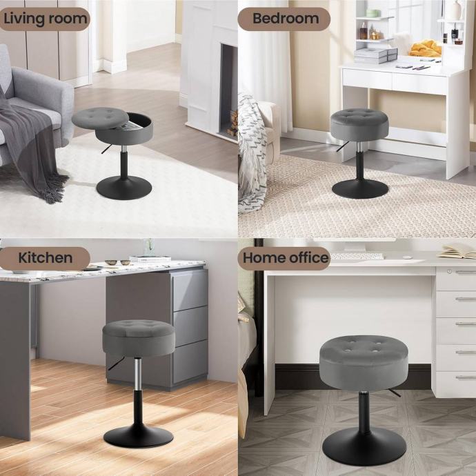 Visina stolca može se podesiti između 50 i 66,5 cm, što omogućuje korištenje kao kuhinjski stolac, barski stolac, stolac za toaletni stol ili dodatni stolac za doručak. Sjedište se može ukloniti i iskoristiti kao spremište za sitne predmete, čime stolac postaje još praktičniji.