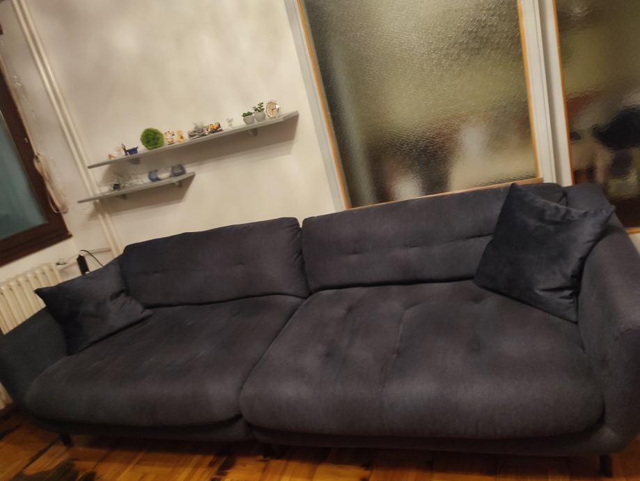 Velika komforna sofa. Detalj na upit, malo rabljeno, jastuci gratis, tamnoplava