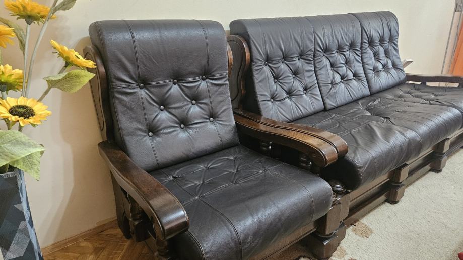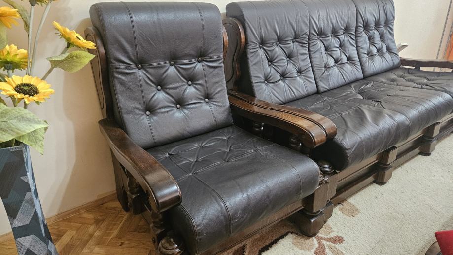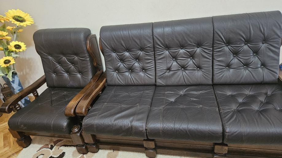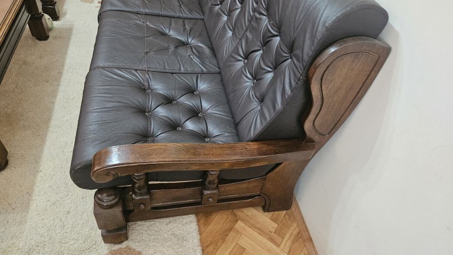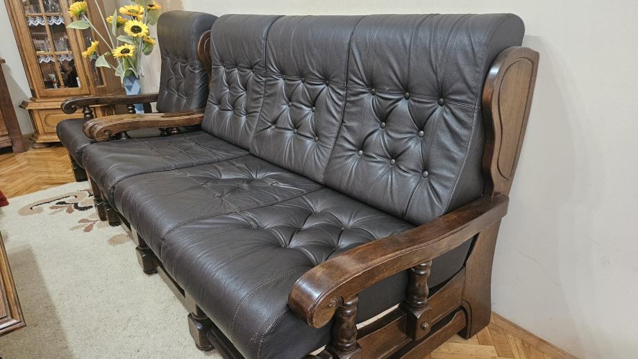 Konstrukcija masivno drvo hrast, trosjed ima funkciju razvlačenja.