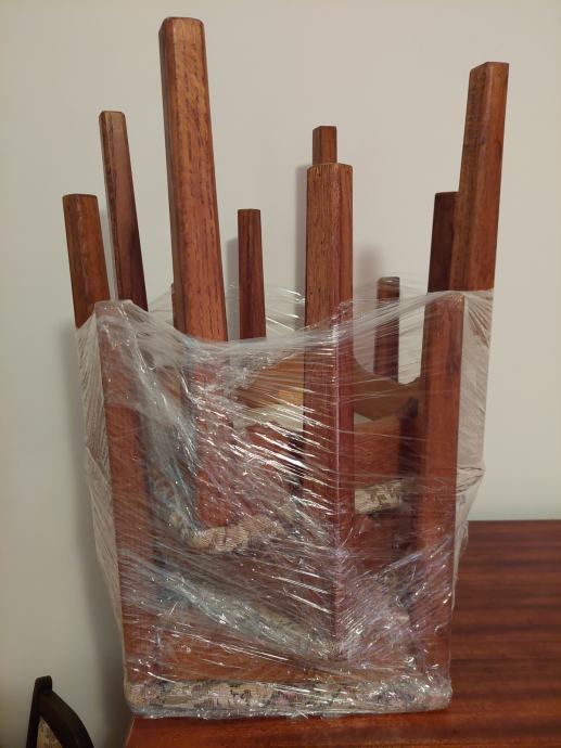 Prodajem 6 drvenih stolica (štokrla), ručni rad, 35x35x46 , tapecirano sjedište .