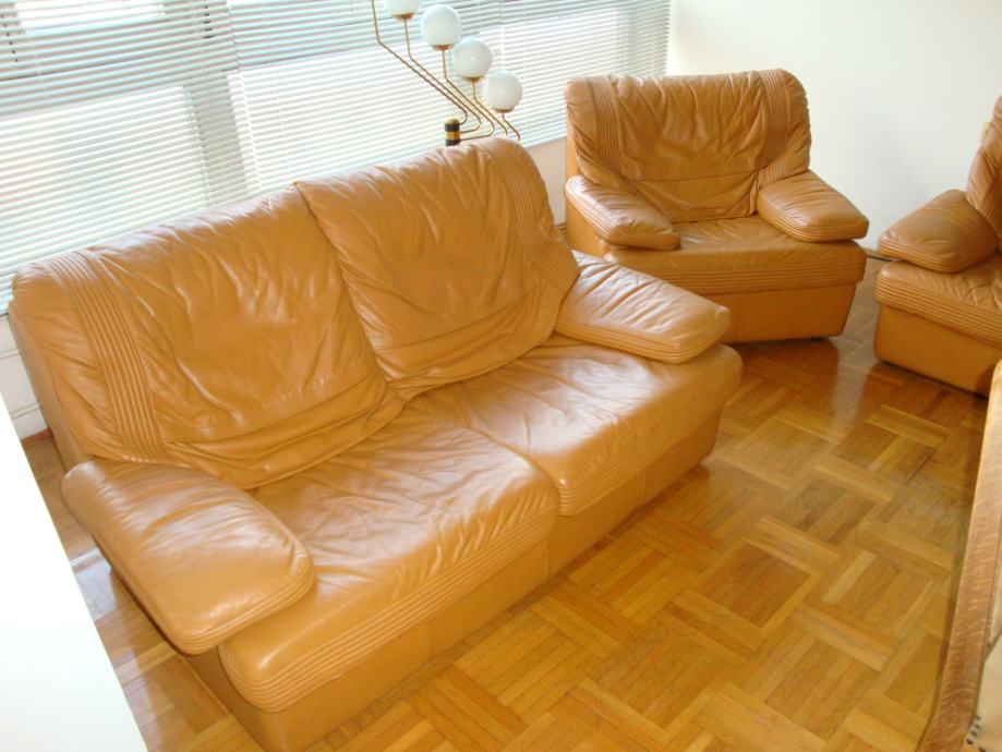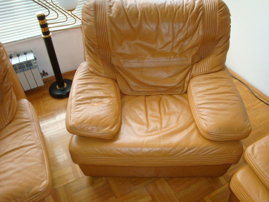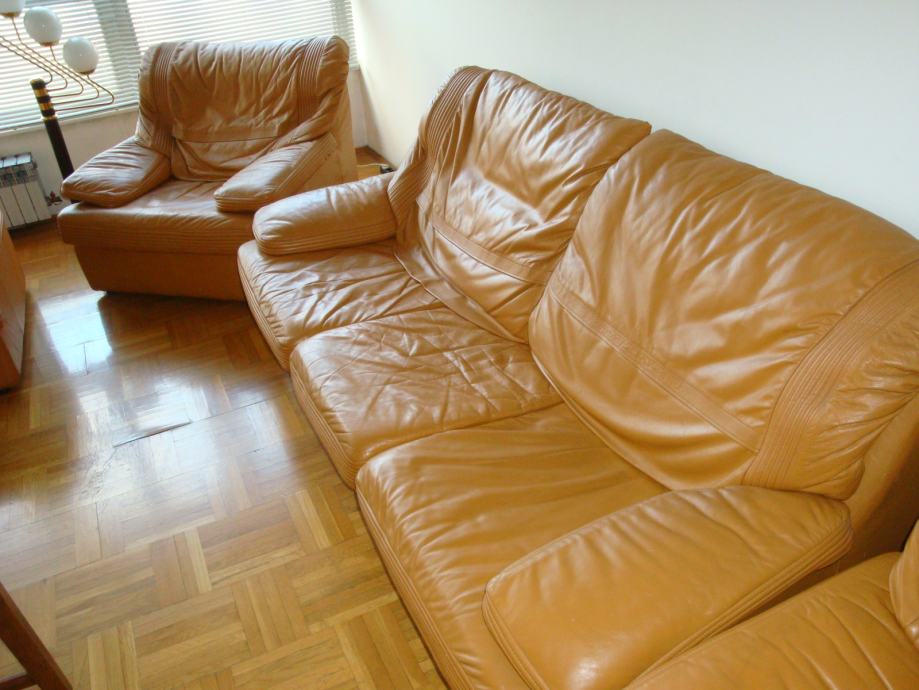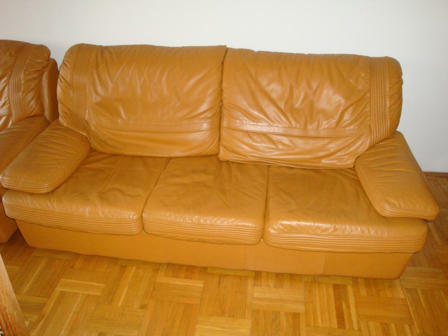 Trosjed i dvosjed nemaju mogučnost razvlačenja za ležaj , leđa su također presvučena u koži .