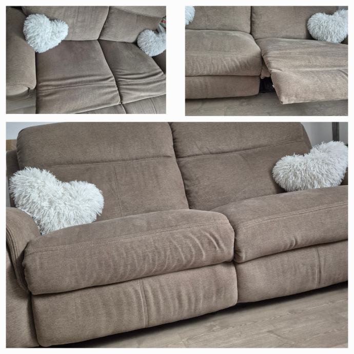 Prodajem kauc koji je trosjed (200cm sirine) ali izgleda kao dupli dvosjed jer se obje strane mogu ispruziti u relax opciju. Jako je udoban i boja je zahvalna jer se ne prlja. Kupljen nov prije 2 godine. Sve funkcije rade i dobro je ocuvan.