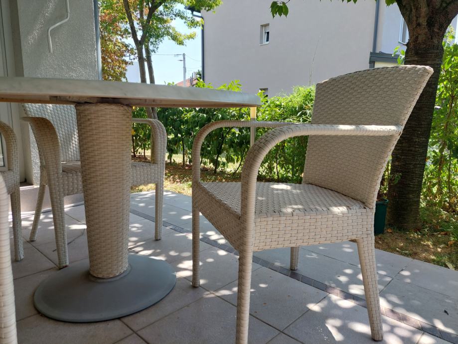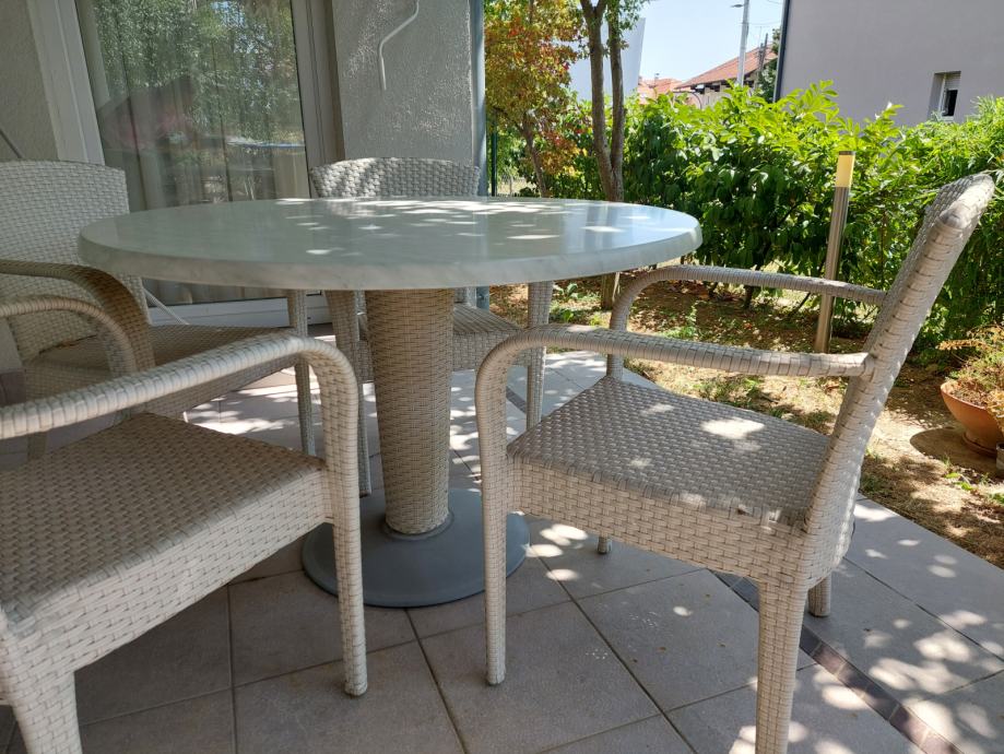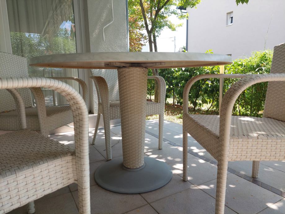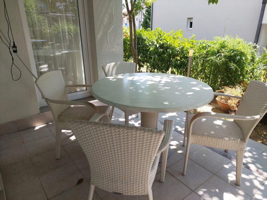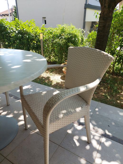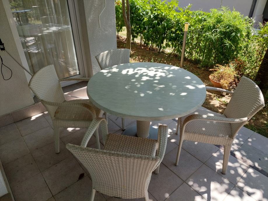 Prodajem vrtnu garnituru - stol i 4 stolice, bež boje.