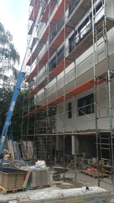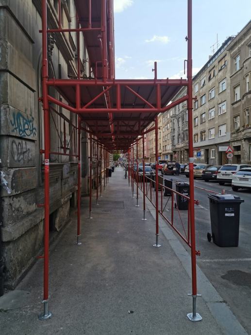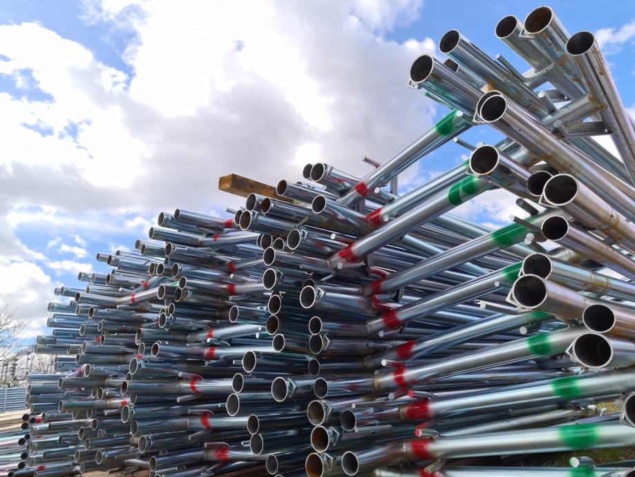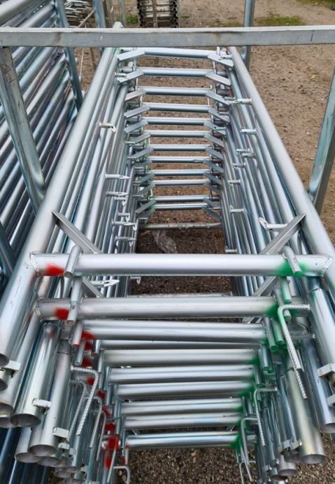 Iznajmljujemo povoljno brzomontaznu fasadnu skelu sa atestom. Iznajmljujemo okvire (ramove), podnice, podnice sa prolazom, zaštitne ograde i sve ostale elemente skele.