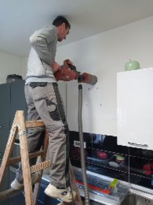 u uređenim prostorijama tijekom rezanja i bušenja nema oštečivanja ostatka zida,