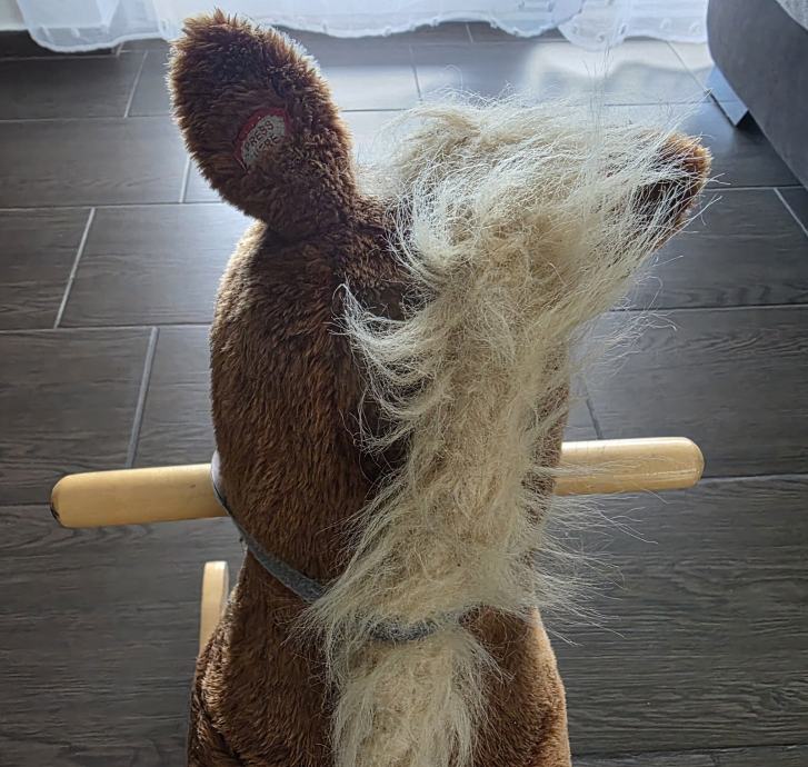 Konjić za ljuljanje. U ušima ima funkciju za glasanje, rzanje i top kopita. Rabljeno, ali ko nov.