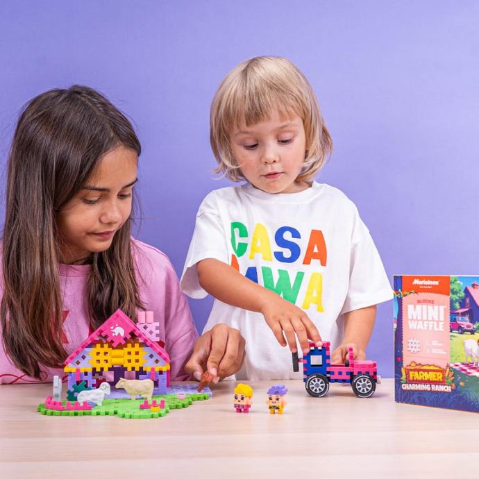 Uz ovaj set možeš stvoriti funkcionalan ranč s kućom, vozilom, travnjakom i slatkim životinjama. Sa 112 savitljivih, šarenih elemenata, mogućnosti za gradnju i igru su beskrajne. Svako dijete može osmisliti svoj vlastiti djelić mirnog seoskog života.