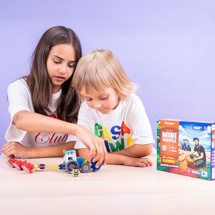 Set sadrži 50 fleksibilnih, šarenih dijelova za sastavljanje traktora s plugom i figuricom Jacka. Posebno dizajniran plug donosi autentičan doživljaj obrade zemlje, dok veliki kotači daju vozilu poseban karakter.