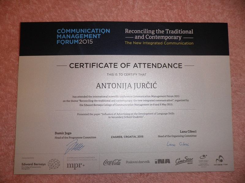 Izjava o izvršenoj lekturi ovjerena lektorskim pečatom!