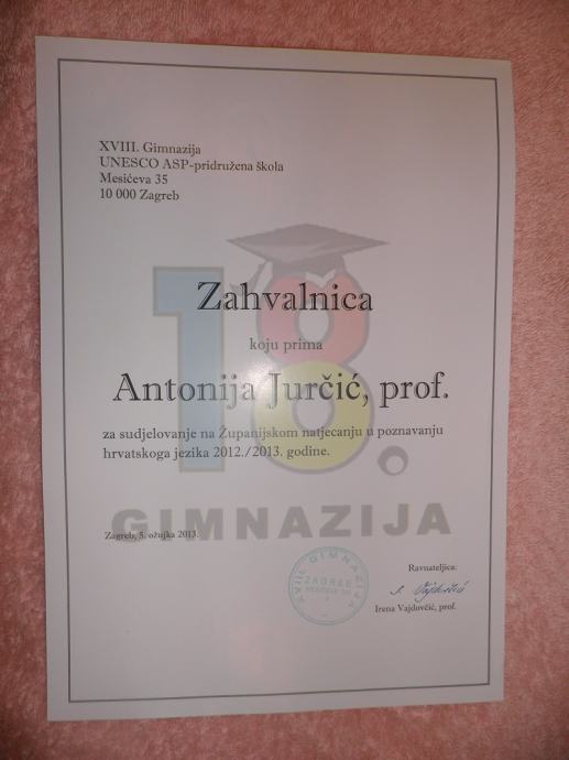 Antonija Jurčić, prof. hrvatskoga jezika i književnosti