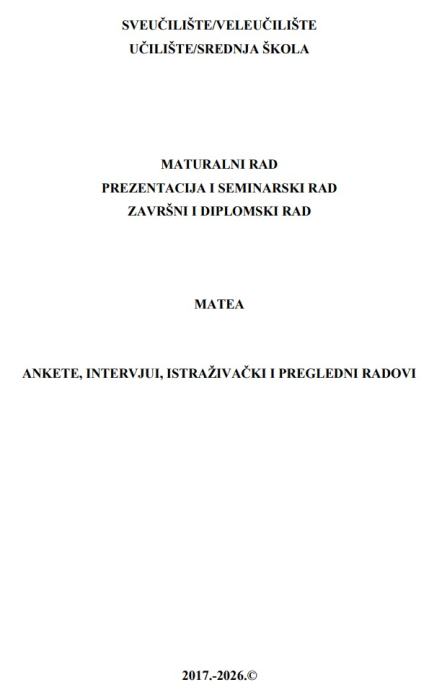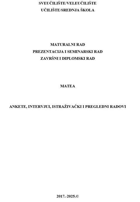 DIPLOMSKI, ZAVRŠNI, SEMINARSKI RADOVI ZA SREDNJE ŠKOLE I FAKULTETE