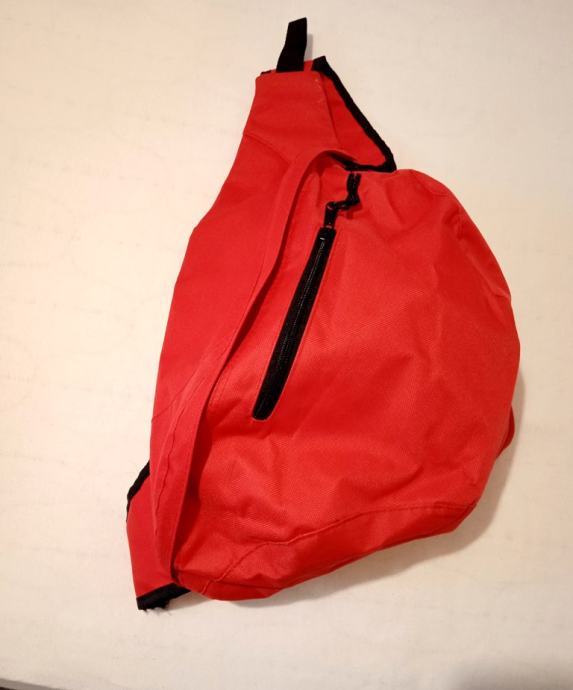 2. Crveni, univerzalni ruksak Centrix, CRVENE boje, model sa jednom podesivom dijagonalnom ramenicom. Ruksak je prostran i ima dodatni prostrani pretinac – vidi se na slikama. NOV (nikad nije nošen)