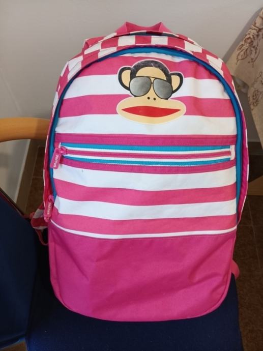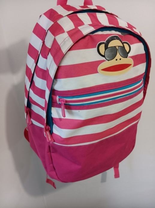 3. Roza-bijeli, orginal Paul Frank – minimalno korišten – stanje se vidi na slikama – nema nikakvih oštećenja – svi patenti u stanju kao novi. Približne dimenzije: 45 x 30 x 18 (prilično prostran). Visoka kvaliteta . 1 veliki pretinac, 1 srednji pretinac i 1 manji pretinac. Minimalno korišten.