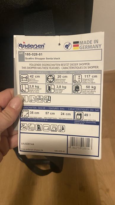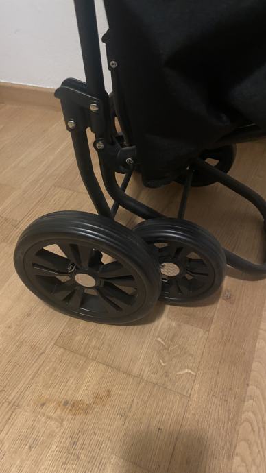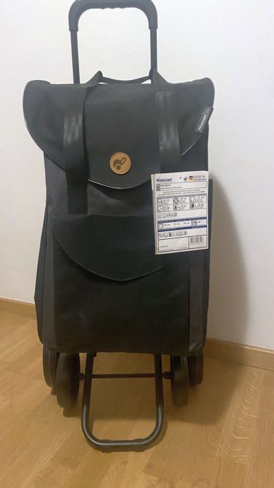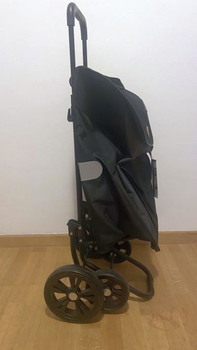 Kolica se zatvaraju vezicom, preklopom i čičak-trakom, u glavnom pretincu: 1 ušiveni džep s čičak-trakom i 1 ušivena podna ploča, sprijeda: 1 našiveni džep s preklopom i čičak-trakom, na desnoj strani: 1 otvoreni džep, straga: 2 pričvršćivača s beskonačno podesivom kopčom i čičak-trakom za okvir, opremljena fiksnom donjom pločom, tihim kotačima i zaštitnim nožicama, opremljena ručkom podesivom po visini i sklopivom bazom, vodoodbojna, reflektirajuća, ima prostran glavni pretinac, stabilna, torba se lako skida, sklopiva i ima 4 kotača te nosivost od 50 kg i bez problema prenosi i teške terete.