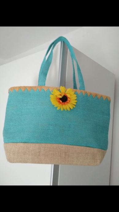 Prodajem nov/nekorišten tirkizno plavi slamnati ceker s podstavljenim dnom.