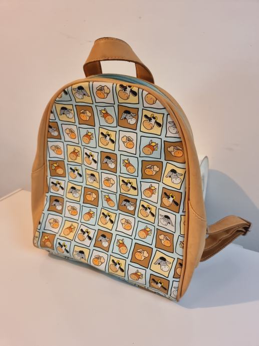 Ruksak ima veseli uzorak sa životinjama, zatvara se patentnim zatvaračem. Imaglavni veliki džep i jedna manji unutra.